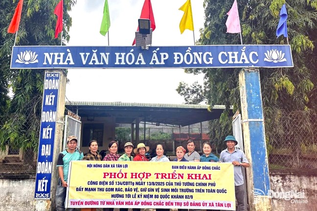 | Ban Điều hành ấp Đồng Chắc phối hợp cùng Hội Nông dân xã Tân Lợi thu gom rác thải, bảo vệ môi trường. Ảnh: ĐPCC |