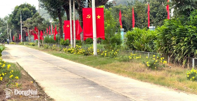 | Một tuyến đường rực rỡ cờ hoa tại xã vùng sâu, vùng xa Đak Lua. Ảnh: ĐPCC |