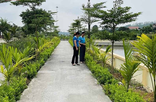 | “Tuyến đường phụ nữ tự quản” ở xã Hà Lai được trồng cây cảnh hai bên đường, tạo cảnh quan môi trường "Xanh – sạch – đẹp”. |