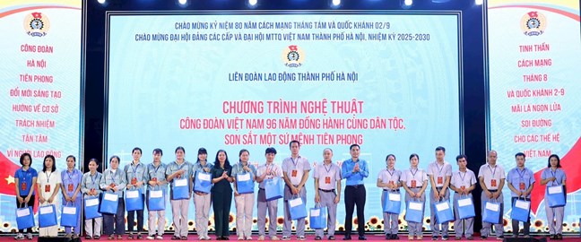 (Mặt trận) - Trong không khí cả nước hướng về ngày lễ trọng đại kỷ niệm 80 năm Cách mạng Tháng Tám thành công và Quốc khánh nước Cộng hòa xã hội chủ nghĩa Việt Nam (2/9/1945 - 2/9/2025), Liên đoàn Lao động thành phố Hà Nội tổ chức Chương trình nghệ thuật đặc biệt phục vụ công nhân, lao động Thủ đô, với chủ đề “Công đoàn Việt Nam 96 năm đồng hành cùng dân tộc son sắt một sứ mệnh tiên phong”