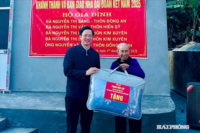 (Mặt trận) - Ngày 7/1, Ủy ban MTTQ Việt Nam thành phố Hải Phòng tổ chức khánh thành, bàn giao 5 ngôi nhà "Đại đoàn kết" tại xã Chí Minh. Ông Phạm Văn Lập, Phó Bí thư Thành ủy, Chủ tịch Ủy ban MTTQ Việt Nam thành phố Hải Phòng dự buổi lễ.