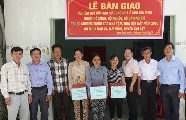 Năm 2024 và các tháng đầu năm 2025, huyện Cai Lậy xây dựng, sửa chữa 356 căn nhà cho người có công, thân nhân người có công, hộ có hoàn cảnh khó khăn, tổng kinh phí hơn 19 tỷ đồng từ ngân sách và các nguồn vận động. Mỗi căn nhà hoàn thành thể hiện tình cảm, trách nhiệm của chính quyền địa phương, sự sẻ chia của cộng đồng, tạo động lực để các gia đình vươn lên ổn định cuộc sống.