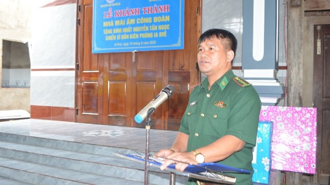 Phát biểu tại buổi lễ, Đại tá Rơ Lan Ngân, Phó Chính ủy Ban Chỉ huy Bộ đội Biên phòng tỉnh Đắk Lắk nhấn mạnh: “Việc khánh thành và bàn giao Nhà Mái ấm Công đoàn hôm nay không chỉ giúp gia đình đồng chí Nguyễn Tấn Ngọc có nơi ở ổn định, vững tâm công tác, mà còn thể hiện sự quan tâm sâu sắc của tổ chức Công đoàn, của cấp ủy, chỉ huy các cấp và tình cảm đồng chí, đồng đội.