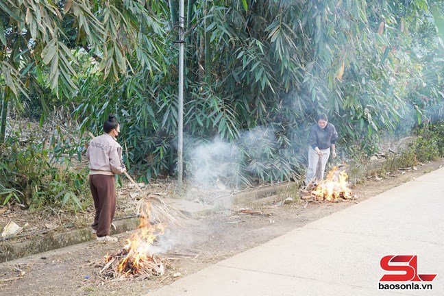 | Người dân phường Chiềng Cơi dọn dẹp đường ngõ bản. |