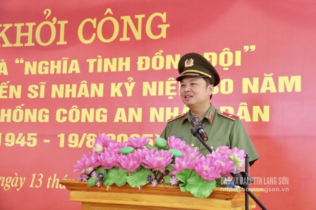 Phát biểu tại buổi lễ, Thiếu tướng Nguyễn Tiến Trung, Giám đốc Công an tỉnh Lạng Sơn nhấn mạnh sự quan tâm của Bộ Công an và Công an tỉnh đối với đời sống cán bộ, chiến sĩ. Việc hỗ trợ xây nhà nhằm giúp gia đình Thiếu tá Hà Văn Sân ổn định cuộc sống, có thêm động lực để yên tâm công tác, hoàn thành tốt mọi nhiệm vụ được giao.