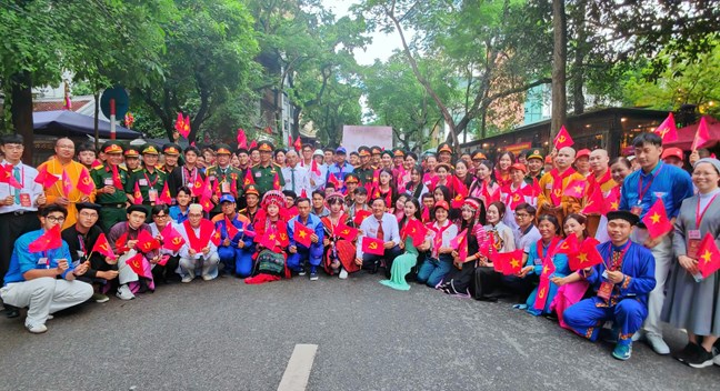 | Khối diễu hành Đại đoàn kết các dân tộc Việt Nam có sự tham gia của 10 cựu chiến binh đại diện cho người có công với cách mạng |