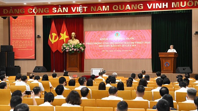 Theo đó, Đảng ủy, lãnh đạo Kiểm toán Nhà nước kêu gọi mỗi cán bộ, công chức viên chức, người lao động, bên cạnh việc tham gia ủng hộ trực tiếp tại hội trường, sẽ chia sẻ, ủng hộ tối thiểu mỗi người 1 ngày lương cho đồng bào bị ảnh hưởng bởi cơn bão số 10.