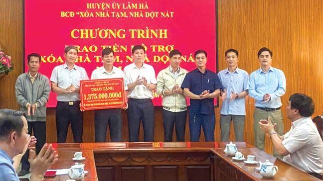Xác định chung tay xóa nhà tạm, nhà dột nát là nhiệm vụ chính trị đặc biệt, đồng thời là chủ trương lớn có ý nghĩa sâu sắc trong bảo đảm an sinh xã hội, tạo động lực thúc đẩy phát triển kinh tế, góp phần nâng cao chất lượng cuộc sống Nhân dân, thời gian qua, huyện Lâm Hà đã và đang dồn lực xây dựng, sửa chữa nhà ở cho người có công với cách mạng, hộ nghèo, cận nghèo trên địa bàn huyện.Vừa qua, huyện Lâm Hà đã tổ chức chương trình trao tiền hỗ trợ xây nhà tạm, nhà dột nát cho 42 hộ dân. Tại chương trình, đồng chí Nguyễn Văn Tân - Phó Bí thư Thường trực Huyện ủy, Chủ tịch HĐND huyện Lâm Hà chia sẻ: “Đối với các gia đình được nhận tiền hỗ trợ xoá nhà tạm, nhà dột nát, tôi mong rằng đây sẽ là điều kiện cần để các hộ gia đình có nhà ở an toàn, chắc chắn, góp phần nâng cao chất lượng cuộc sống và giảm nghèo bền vững. Việc xóa nhà tạm, nhà dột nát không chỉ cải thiện điều kiện sống mà còn tạo động lực để các hộ nghèo vươn lên, tự chủ hơn trong cuộc sống, mà còn góp phần xây dựng huyện Lâm Hà phát triển bền vững”. Đồng chí cũng nhấn mạnh, việc các đơn vị, địa phương trên địa bàn huyện đang đẩy mạnh thực hiện Chương trình Xoá nhà tạm, nhà dột nát trong thời gian qua đã có những kết quả đáng ghi nhận. Trong đó các tổ chức, đơn vị đã có sự chủ động, trách nhiệm và quyết tâm cao của các cấp ủy, chính quyền, MTTQ và đoàn thể huyện trong triển khai chương trình. Qua đó, lãnh đạo địa phương yêu cầu thời gian tới, các đơn vị, địa phương cần tiếp tục phát huy hơn nữa truyền thống đoàn kết, vượt qua khó khăn, quyết tâm thực hiện thắng lợi các mục tiêu, kế hoạch về xoá nhà tạm, nhà dột nát đã đề ra.