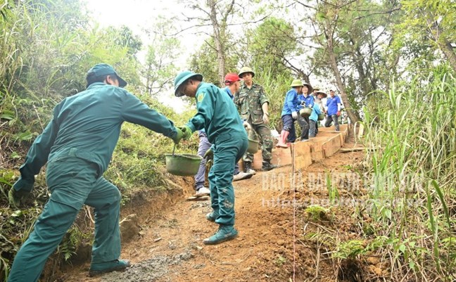 Đến nay, đơn vị đã huy động cán bộ, chiến sĩ, vận động Nhân dân hỗ trợ hơn 6.000 ngày công lao động, cùng các nguồn hỗ trợ khác xây dựng được 36 đường kiểm tra cột mốc bảo vệ biên giới, với tổng chiều dài hơn 5km, tổng trị giá hỗ trợ trên 3 tỷ đồng. Tính riêng từ đầu năm 2025 đến nay, trên địa bàn xã có 14 hộ gia đình hiến đất tạo mặt bằng thực hiện.