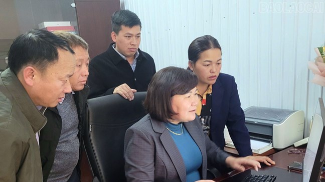 | Cán bộ Ủy ban Mặt trận Tổ quốc xã Lao Chải triển khai các nhiệm vụ trên ứng dụng công nghệ số |