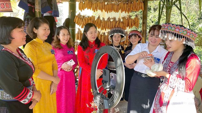 | Nhiều hội viên Hội Liên hiệp Phụ nữ xã Lao Chải đã biết livetream giới thiệu các sản phẩm của địa phương đến khách hàng |