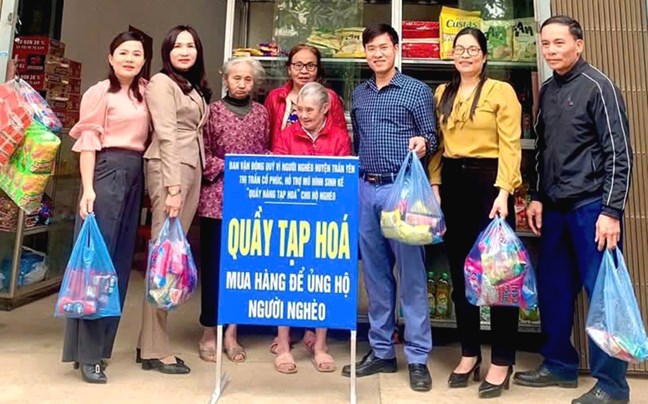 | Ban vận động Quỹ “Vì người nghèo” huyện Trấn Yên và thị trấn Cổ Phúc hỗ trợ mô hình sinh kế “Quầy hàng tạp hóa” cho hộ cụ Nguyễn Thị Kế ở tổ dân phố số 9, thị trấn Cổ Phúc. |