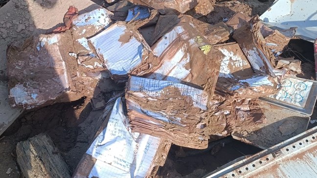 | Sách vở của học sinh bị vùi lấp sau lũ |