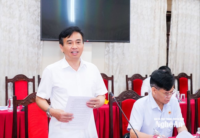 | Đồng chí Trần Văn Hùng - Phó Giám đốc Báo và phát thanh, truyền hình Nghệ An phát biểu về công tác tuyên truyền. Ảnh: T.L |