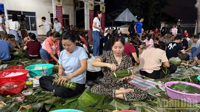 | Người dân phường Trảng Dài gói bánh gửi đồng bào miền trung bị thiệt hại do thiên tai |