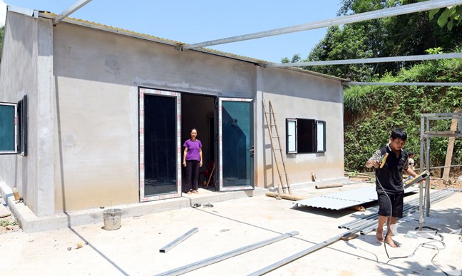 | Ngôi nhà của gia đình bà Triệu Thị Nhị, thôn Phiêng Phàng, xã Thượng Minh đang được hoàn thiện |