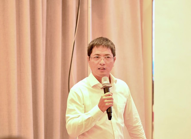 TS. Nguyễn Hùng Minh - Phó Trưởng phòng Thị trường Carbon (Cục Biến đổi khí hậu, Bộ Nông nghiệp và Môi trường) trao đổi các thông tin liên quan tại hội nghị.