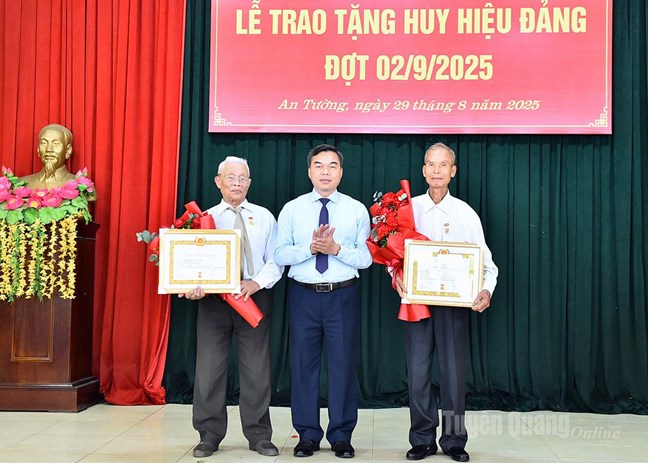 (Mặt trận) - Sáng 29/8, ông Ma Thế Hồng, Phó Bí thư Tỉnh ủy, Chủ tịch Ủy ban MTTQ Việt Nam tỉnh Tuyên Quang đã dự Lễ trao Huy hiệu Đảng cho các đảng viên lão thành tại xã Phú Lương và phường An Tường đợt 2/9.