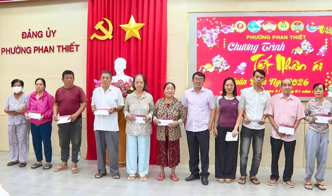 Một trong những điểm sáng của phường Phan Thiết là việc gắn phong trào thi đua với nhu cầu thực tế của Nhân dân. Các hoạt động chăm lo an sinh xã hội được triển khai thường xuyên, thiết thực. Điển hình như trong dịp Tết Nguyên đán 2026, phường đã vận động trao hơn 3.000 suất quà trị giá trên 1 tỷ đồng cho hộ nghèo, hộ cận nghèo và gia đình khó khăn. Cùng với đó, các tổ chức chính trị - xã hội phường tiếp tục duy trì chương trình, hoạt động an sinh xã hội. Đồng thời, nhận ủy thác của Ngân hàng Chính sách xã hội thực hiện vay vốn các hội viên, đoàn viên của hội mình để sản xuất, kinh doanh, tạo việc làm, nâng cao thu nhập, đời sống cho Nhân dân.