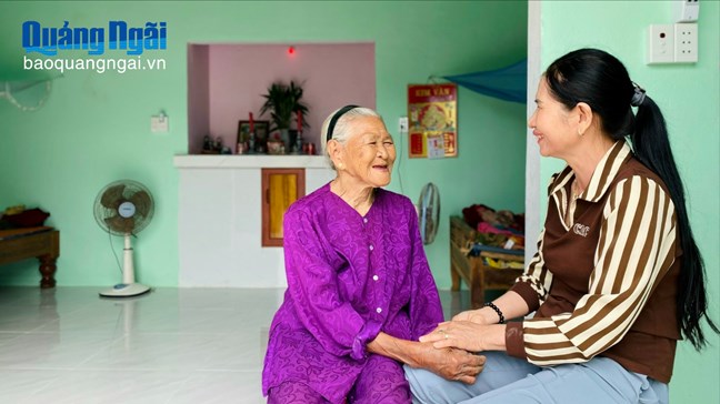 | Bà Nguyễn Thị Thơ, ở thôn Thanh Thủy, xã Vạn Tường (Quảng Ngãi), vui mừng khi được các cấp, ngành quan tâm, hỗ trợ giúp bà vượt qua khó khăn. Ảnh: HIỀN THU |