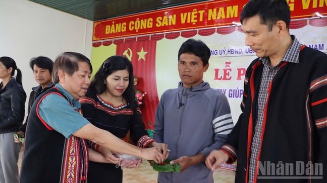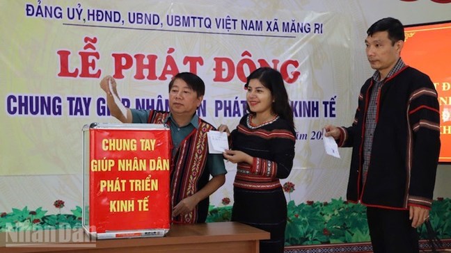 | Cán bộ, đảng viên đóng góp, hỗ trợ nhân dân xã Măng Ri tại lễ phát động |