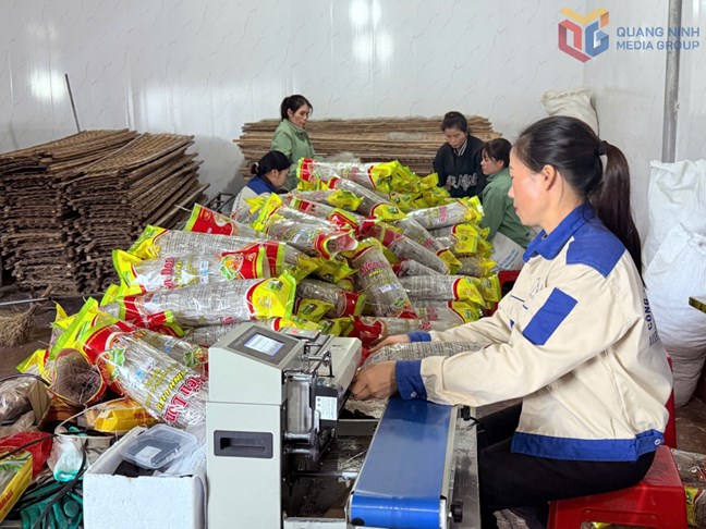Đóng gói sản phẩm OCOP 5 sao Miến dong Bình Liêu tại CP Thương mại và Dịch vụ Bình Liêu.