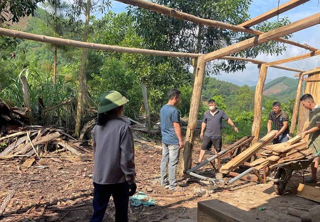 | Sau khi được cấp ủy, chính quyền xã Chợ Mới tuyên truyền, vận động ngôi nhà tạm của hộ bà Nguyễn Thị Chung, thôn Đèo Vai 1, xã Chợ Mới, đã được tháo dỡ và khởi công xây mới. |