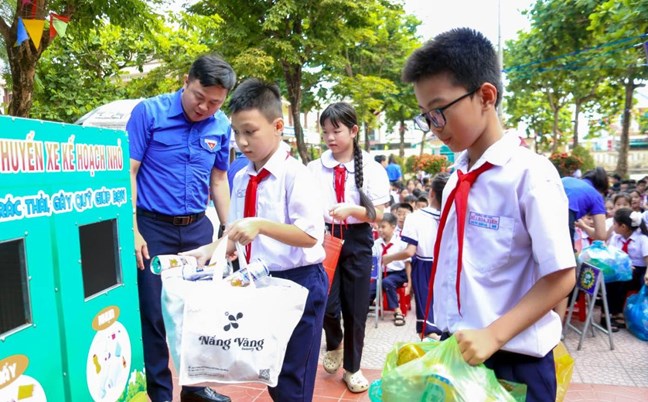 | Học sinh Đà Nẵng thực hiện kế hoạch nhỏ, thu gom rác tài nguyên gây quỹ ủng hộ người nghèo. |