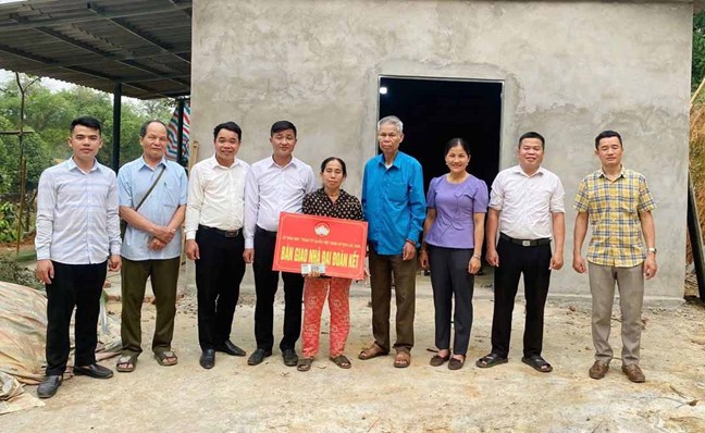 Cấp ủy, chính quyền, Mặt trận Tổ quốc xã Quyết Thắng (Lạc Sơn) trao nhà Đại đoàn kết cho hộ nghèo xóm Phản Chuông.