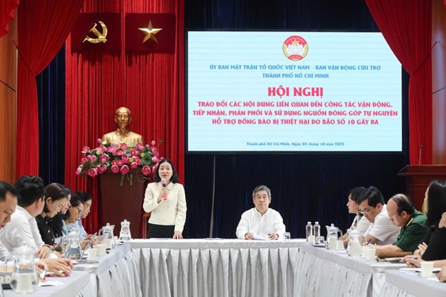 Ngày 3-10, Ủy ban MTTQ Việt Nam – Ban Vận động cứu trợ TP HCM tổ chức hội nghị trao đổi các nội dung liên quan đến công tác vận động, tiếp nhận, phân phối và sử dụng nguồn đóng góp tự nguyện hỗ trợ đồng bào bị thiệt hại do bão số 10 gây ra.