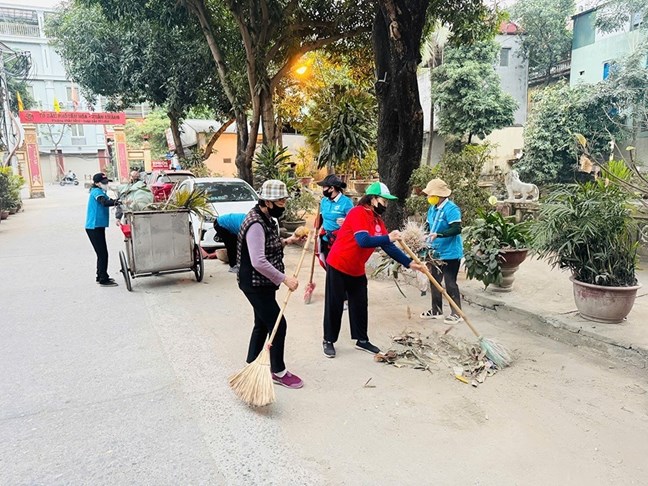 | Nhân dân phường Xuân Đỉnh, quận Bắc Từ Liêm tham gia tổng vệ sinh môi trường tại địa bàn dân cư. Ảnh: L.T |