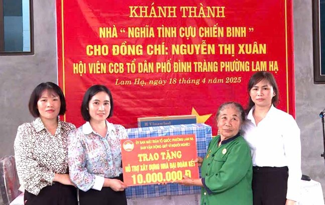 | Ủy ban MTTQ phường Lam Hạ (TP Phủ Lý) trao tặng kinh phí hỗ trợ bà Nguyễn Thị Xuân (TDP Đình Tràng) xây dựng nhà “Đại đoàn kết”. |