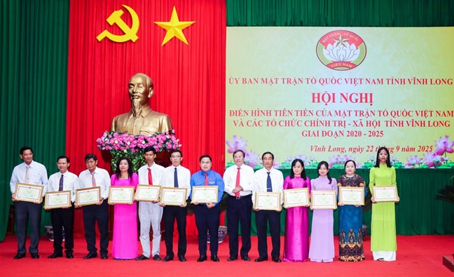 Tại hội nghị, lãnh đạo tỉnh Vĩnh Long đã trao tặng Bằng khen của Chủ tịch UBND tỉnh cho 12 tập thể, 18 cá nhân và Bằng khen của Chủ tịch Ủy ban MTTQ Việt Nam tỉnh cho 10 tập thể, 40 cá nhân có nhiều thành tích nổi bật