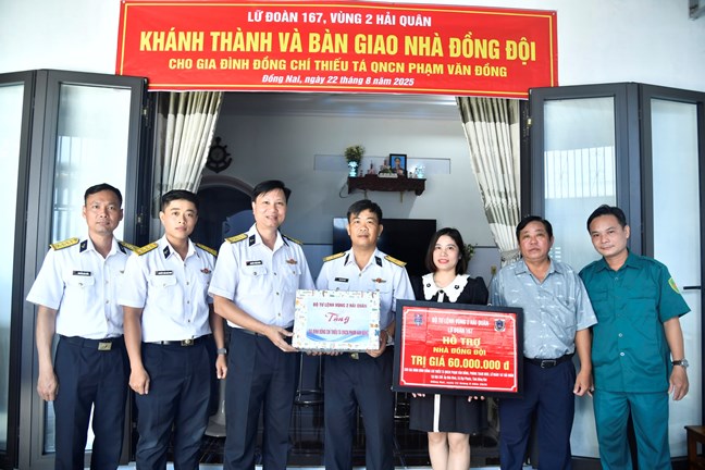 Tại xã Đại Phước (tỉnh Đồng Nai), Lữ đoàn 167 bàn giao nhà đồng đội cho gia đình Thiếu tá quân nhân chuyên nghiệp (QNCN) Phạm Văn Đồng, Đội trưởng đội xe, Ban Hành chính, Phòng Tham mưu, Lữ đoàn 167.