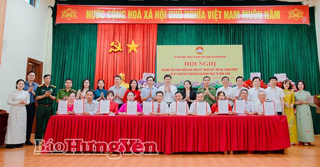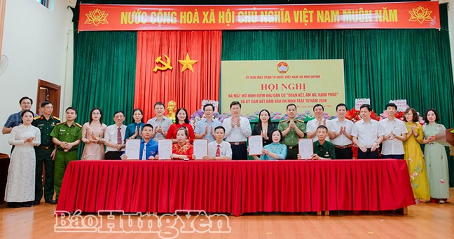(Mặt trận) - Sáng ngày 16/4, Ban Thường trực Ủy ban MTTQ Việt Nam xã Như Quỳnh (tỉnh Hưng Yên) tổ chức hội nghị ra mắt mô hình điểm khu dân cư “Đoàn kết, ấm no, hạnh phúc” và ký cam kết bảo đảm an ninh, trật tự năm 2026. Đồng chí Trần Quốc Toản, Phó Bí thư Thường trực Tỉnh ủy, Chủ tịch Ủy ban MTTQ Việt Nam tỉnh dự. Cùng dự có đồng chí Ngô Thị Kim Hoàn, Ủy viên Ban Thường vụ Tỉnh ủy, Phó Chủ tịch Thường trực Ủy ban MTTQ Việt Nam tỉnh.