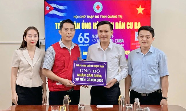 Hưởng ứng lời kêu gọi của Trung ương Hội Chữ thập đỏ Việt Nam tại lễ phát động cấp quốc gia về chương trình vận động ủng hộ Nhân dân Cuba với chủ đề “65 năm nghĩa tình Việt Nam - Cuba”, cán bộ, công chức xã Thượng Trạch đã quyên góp, ủng hộ Nhân dân Cuba với số tiền 30 triệu đồng.