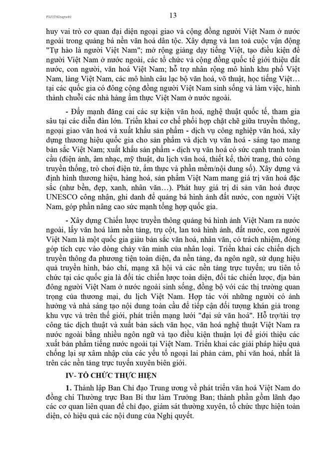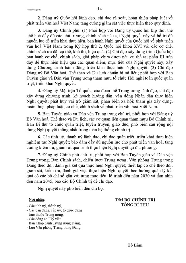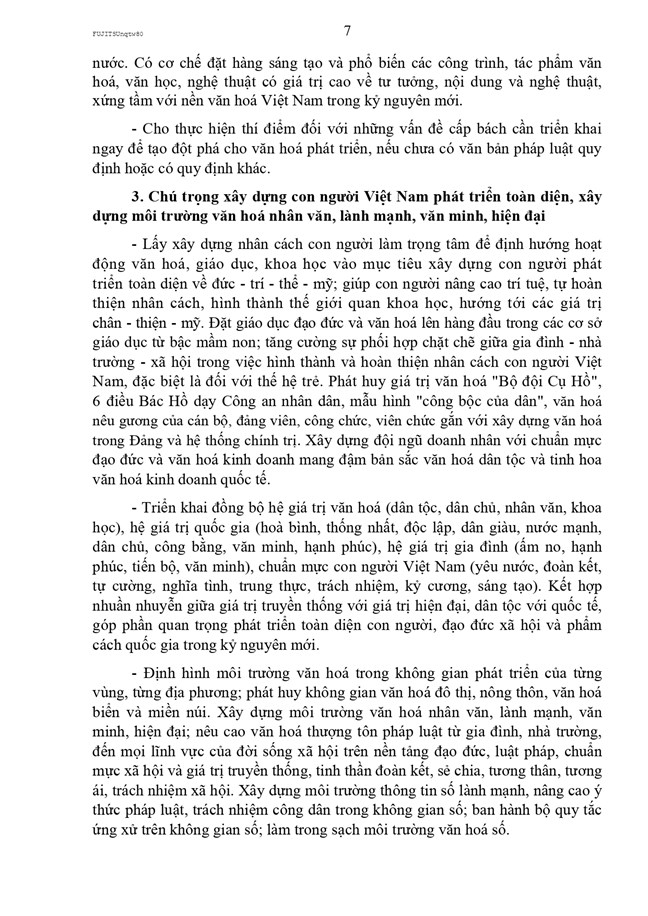 Toàn văn Nghị quyết số 80-NQ/TW của Bộ Chính trị về phát triển văn hóa Việt Nam
