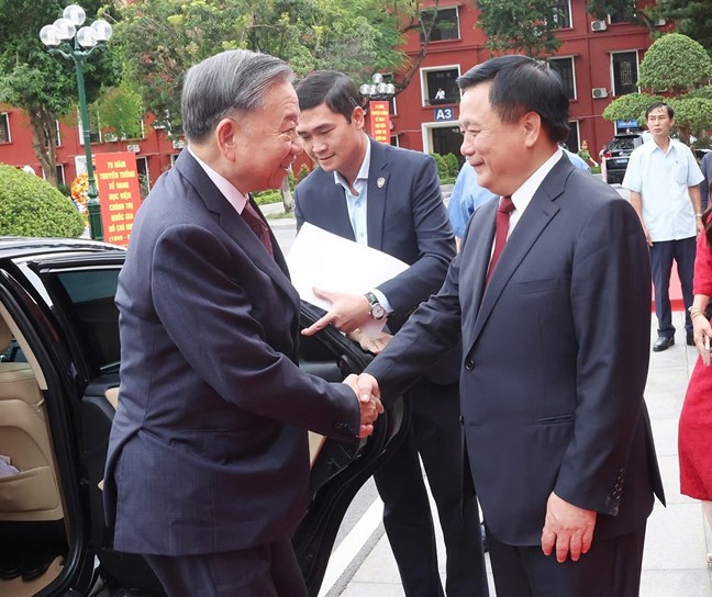 | Đồng chí Nguyễn Xuân Thắng, Ủy viên Bộ Chính trị, Giám đốc Học viện Chính trị quốc gia Hồ Chí Minh, Chủ tịch Hội đồng Lý luận Trung ương đón Tổng Bí thư, Chủ tịch nước Tô Lâm dự Lễ kỷ niệm 75 năm truyền thống Học viện Chính trị quốc gia Hồ Chí Minh, ngày 17-9-2025 _Ảnh: TTXVN |