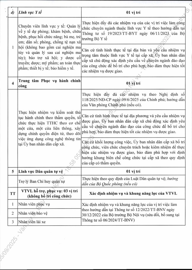 Trước mắt bảo đảm số lượng công chức tại các tổ chức hành chính ở cấp xã tối thiểu theo hướng dẫn tại Công văn số 09/CV-BCĐ ngày 30/5/2025 của Ban Chỉ đạo sắp xếp đơn vị hành chính các cấp và xây dựng mô hình tổ chức chính quyền địa phương 2 cấp của Chính phủ.