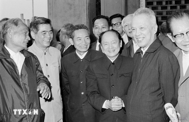 | Chủ tịch Ủy ban Trung ương Mặt trận Tổ quốc Việt Nam Hoàng Quốc Việt với các đại biểu dự Hội nghị lần thứ 4 của Ủy ban Trung ương Mặt trận Tổ quốc Việt Nam (Hà Nội, 26/2/1979). (Ảnh: Xuân Lâm/TTXVN) |