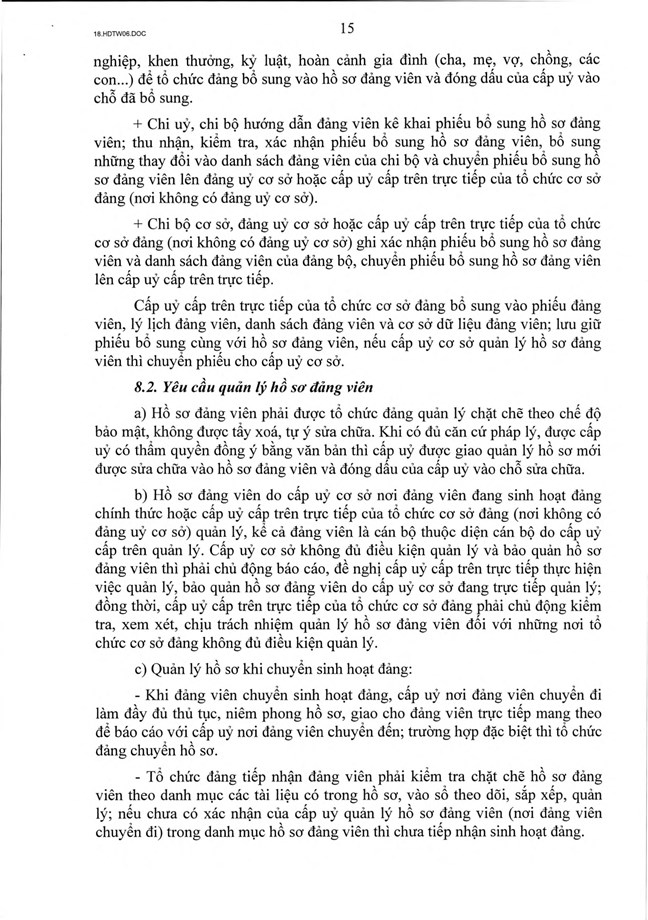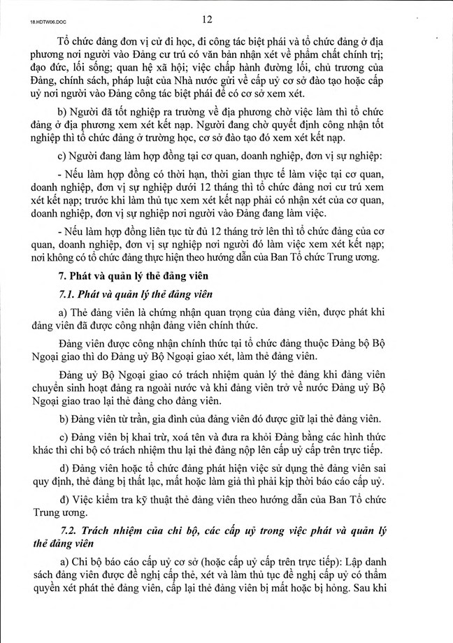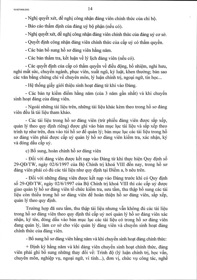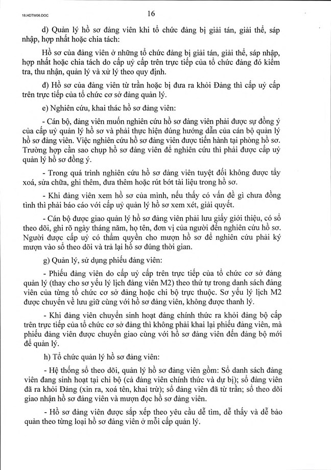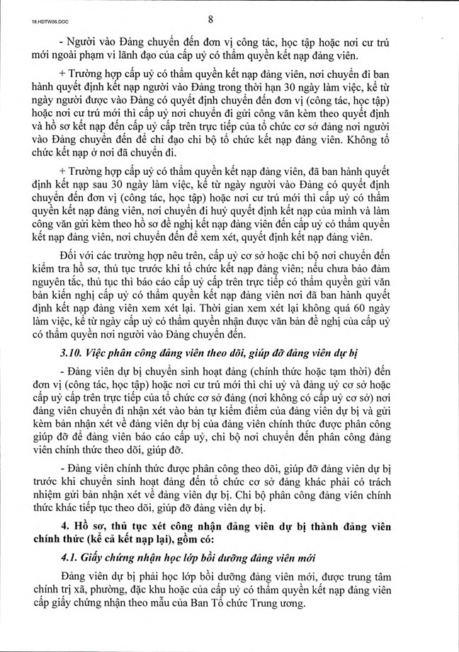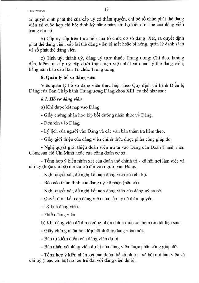 Căn cứ Điều lệ Đảng; Quy định số 294-QĐ/TW, ngày 26/5/2025 của Ban Chấp hành Trung ương Đảng khóa XIII về thi hành Điều lệ Đảng; Quy chế làm việc của Ban Chấp hành Trung ương, Bộ Chính trị và Ban Bí thư khóa XIII, Ban Bí thư hướng dẫn chi tiết đối với 19 vấn đề cụ thể: về tuổi đời và trình độ học vấn của người vào Đảng ở một số trường hợp đặc biệt; về đảng viên phải hoàn thành tốt nhiệm vụ được giao; thủ tục xem xét kết nạp đảng viên (kể cả kết nạp lại); kết nạp đảng viên trong một số trường hợp cụ thể; quản lý hồ sơ đảng viên; chuyển sinh hoạt đảng…