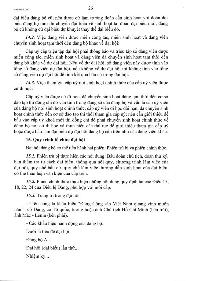 Đáng chú ý, tại mục 13 về cách tính nhiệm kỳ, số thứ tự đại hội đảng bộ, chi bộ, Hướng dẫn số 06- HD/TW nêu rõ, đối với đại hội đảng bộ, chi bộ tiến hành theo nhiệm kỳ, thực hiện đầy đủ các nội dung mà Điều lệ Đảng quy định thì nhiệm kỳ được tính theo thời điểm tiến hành đại hội. Số thứ tự đại hội tiếp nối theo thứ tự các nhiệm kỳ trước.