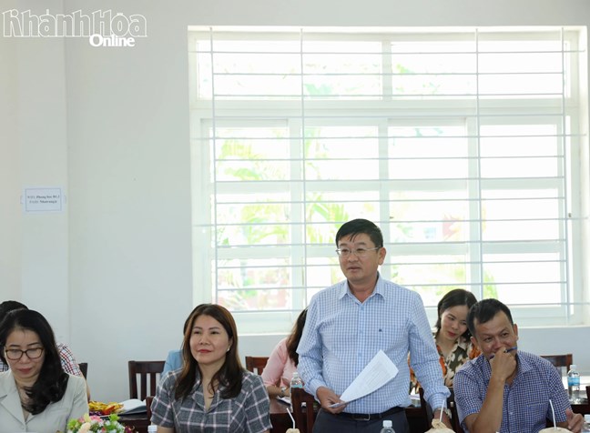 | Lãnh đạo Báo và Phát thanh, Truyền hình Khánh Hòa phát biểu tại Hội nghị. |