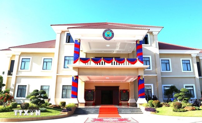 | Công trình Trụ sở Trung ương Hội cựu chiến binh Campuchia có quy mô 3 tầng với 17 phòng chức năng, tổng kinh phí đầu tư 758.200 USD, trong đó, Bộ Quốc phòng Việt Nam tài trợ 558.200 USD. (Ảnh: Hoàng Minh/TTXVN) |