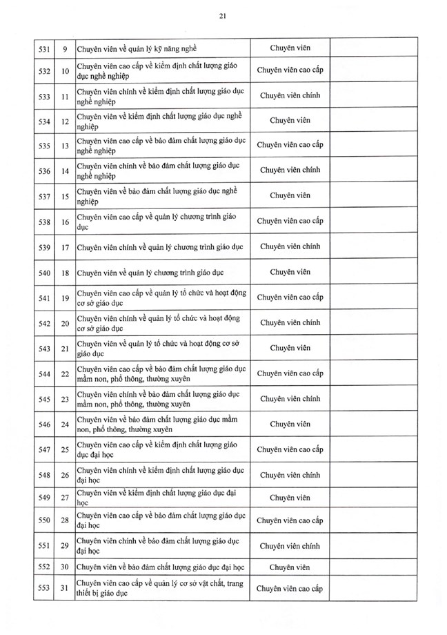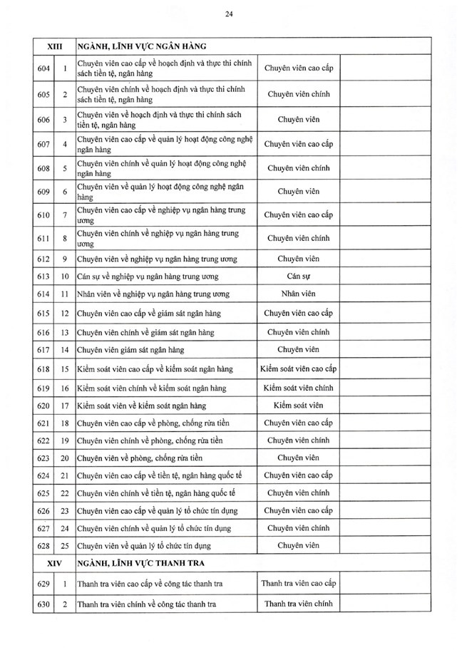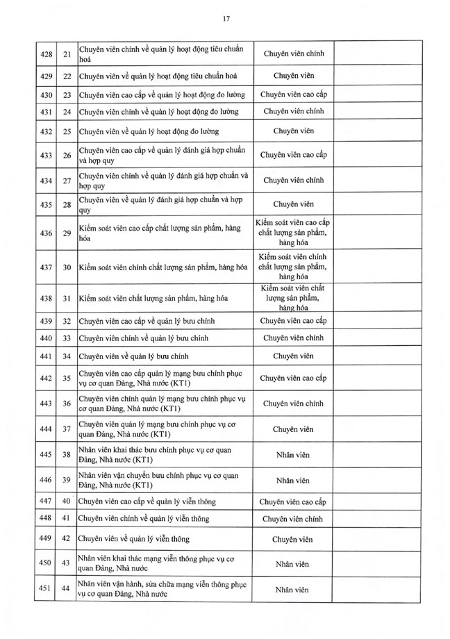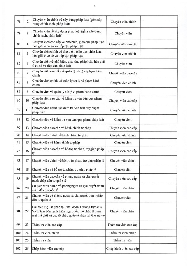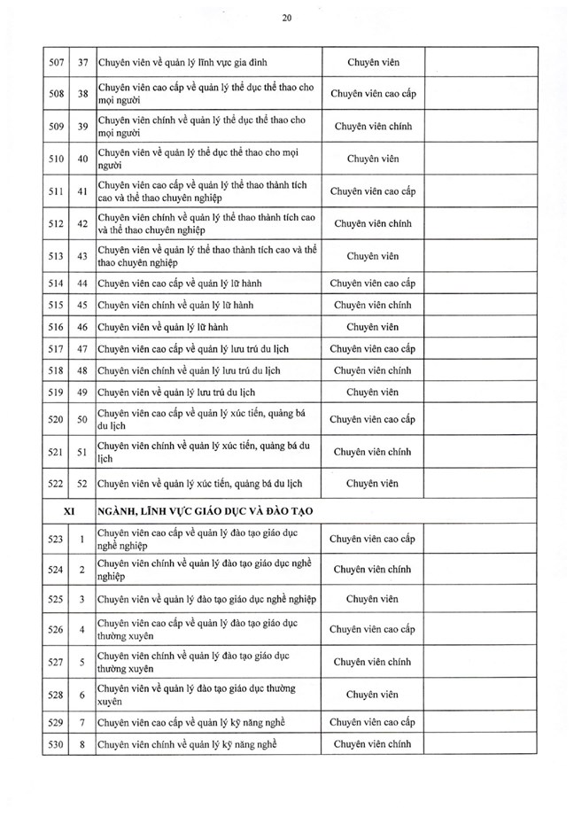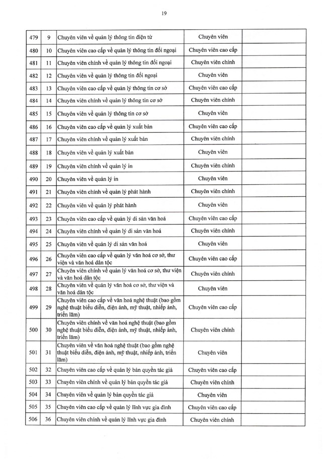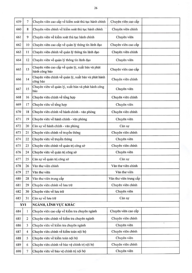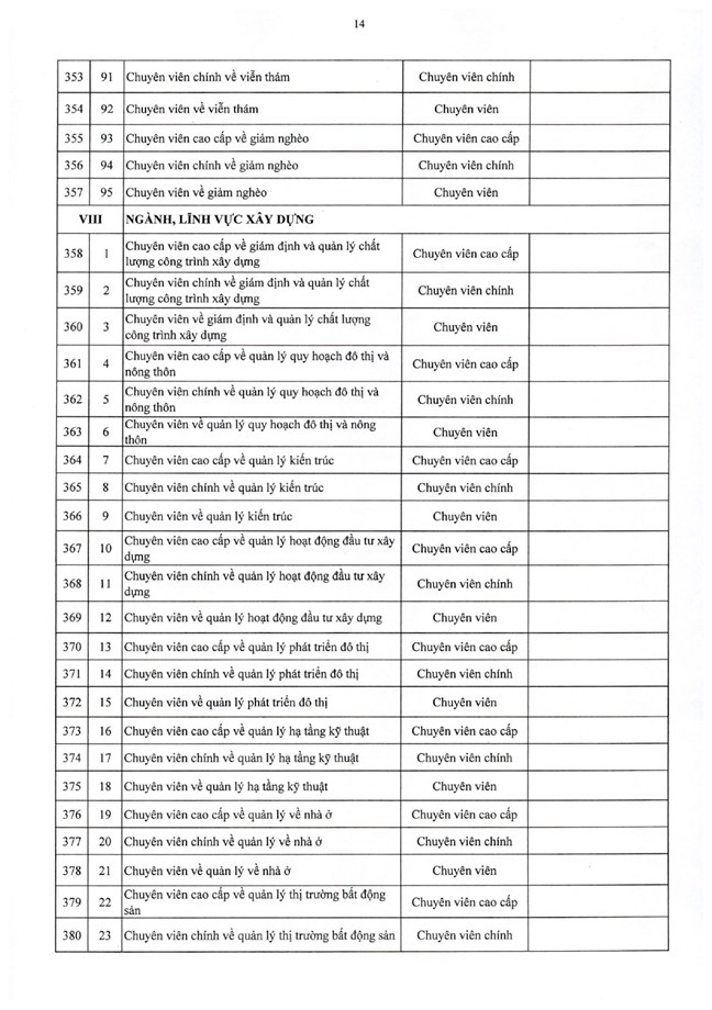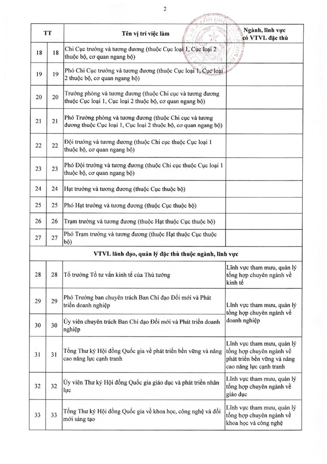 Nghị định ban hành danh mục vị trí việc làm khung trong cơ quan, tổ chức hành chính như sau:
