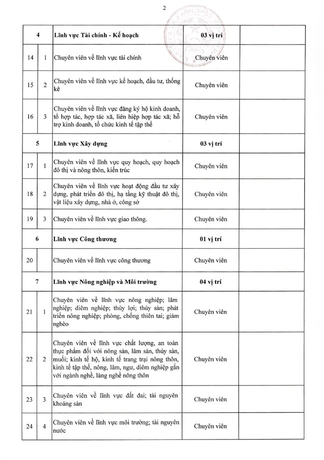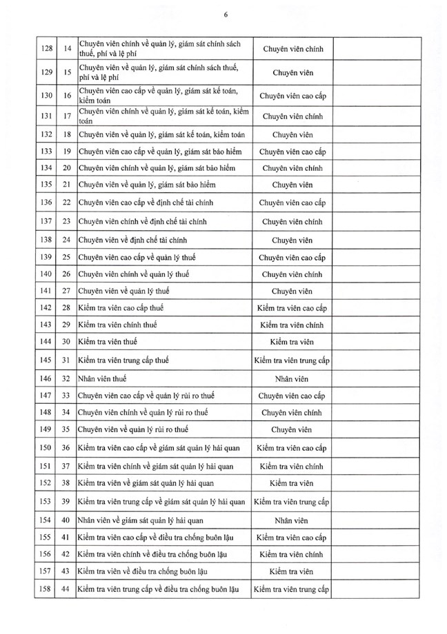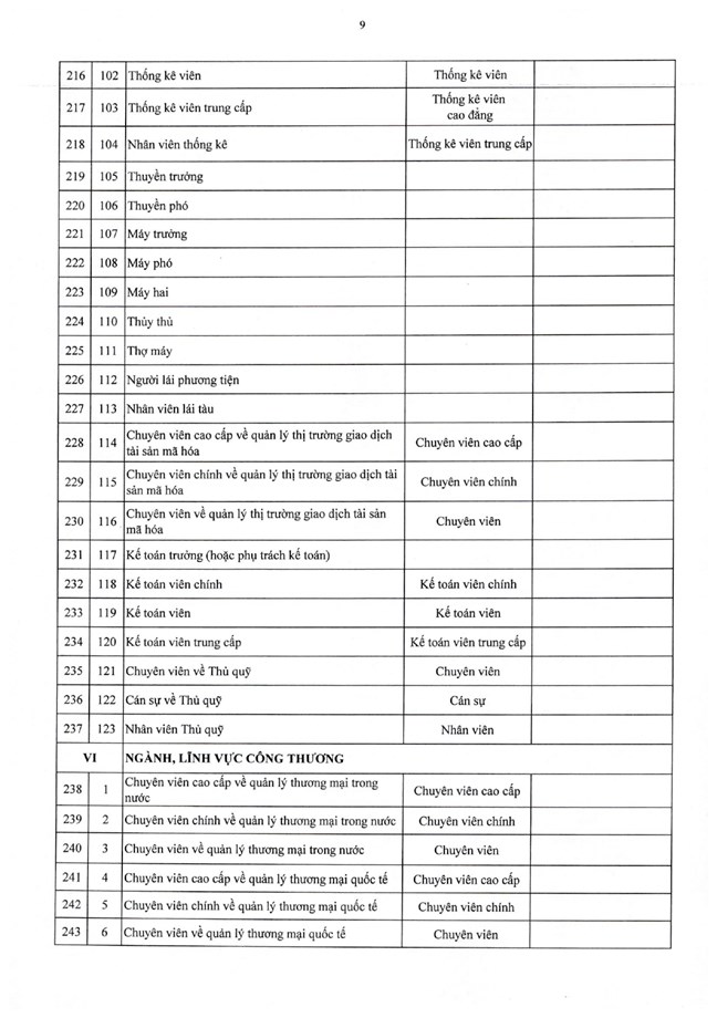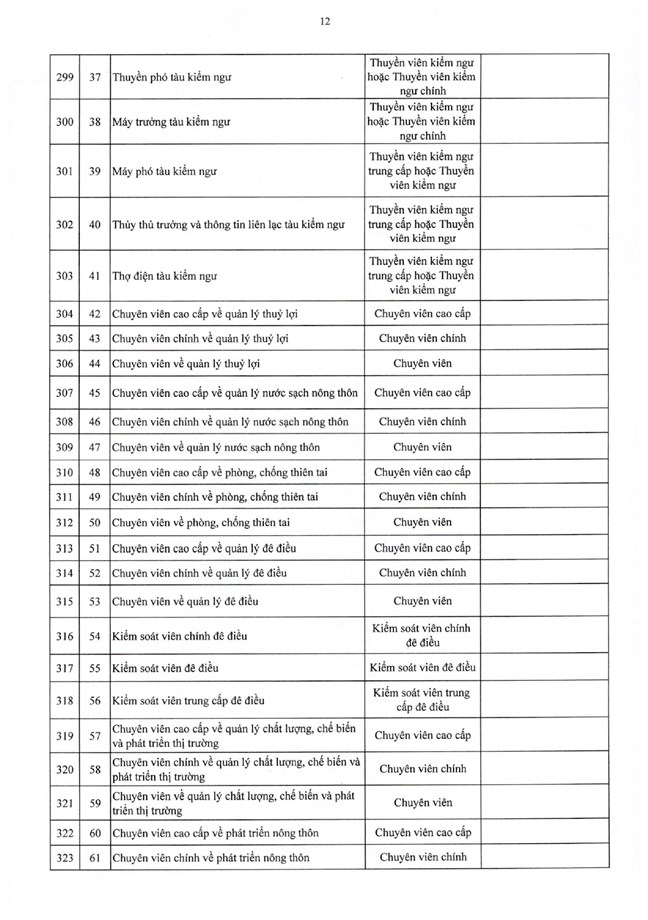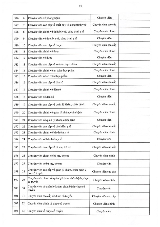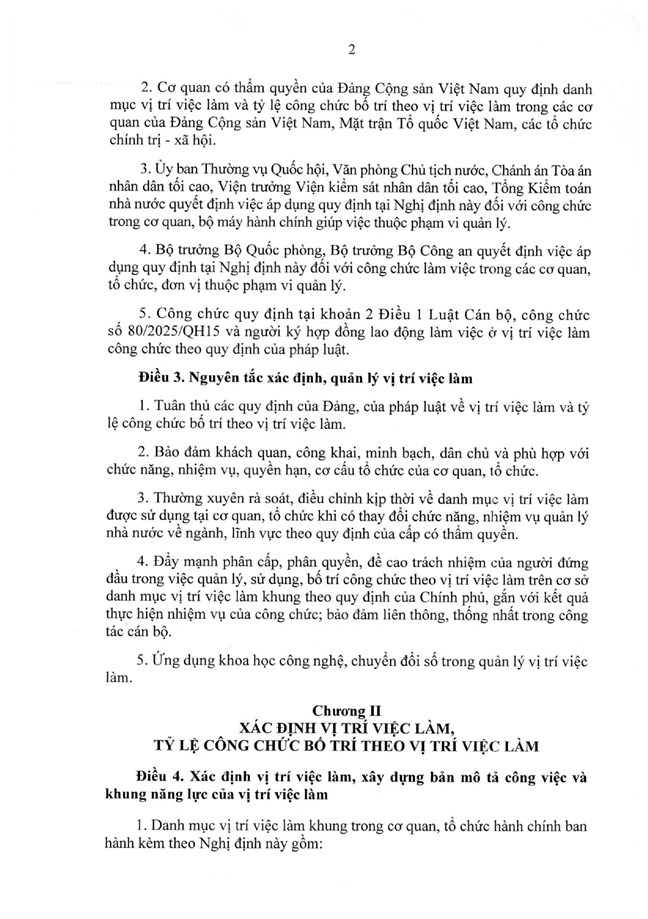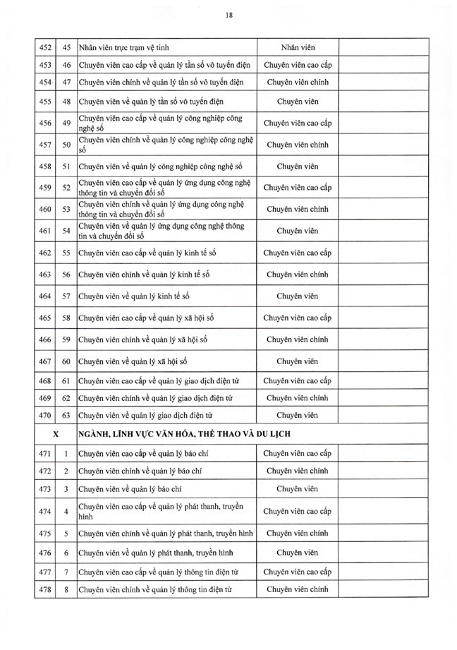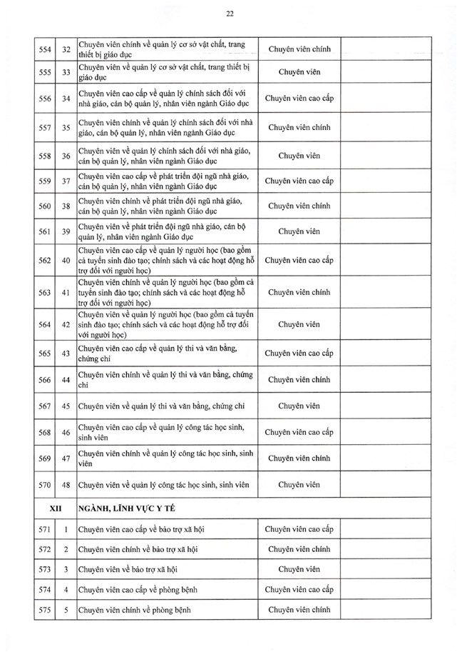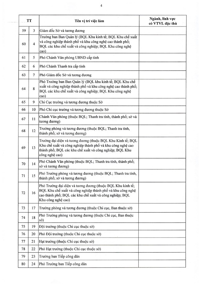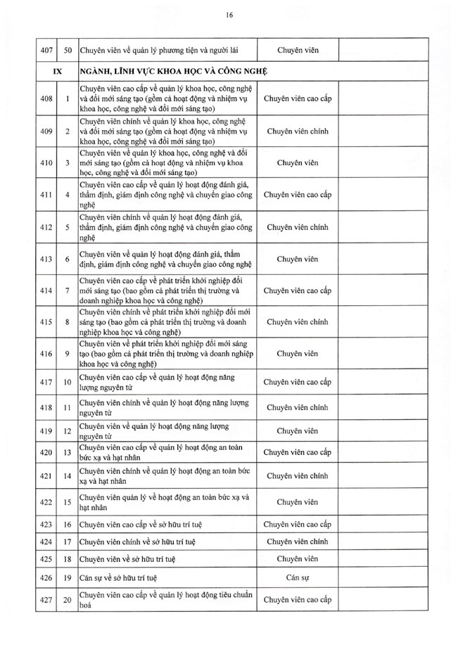 Nghị định ban hành danh mục vị trí việc làm khung trong cơ quan, tổ chức hành chính như sau: