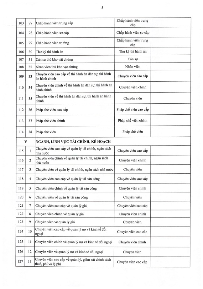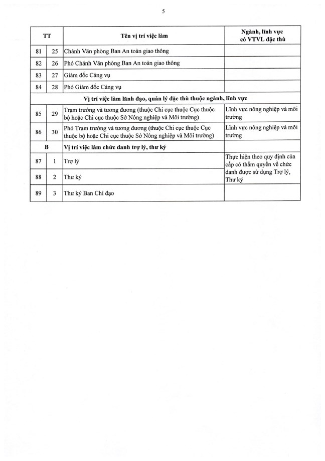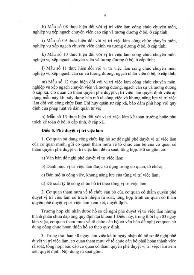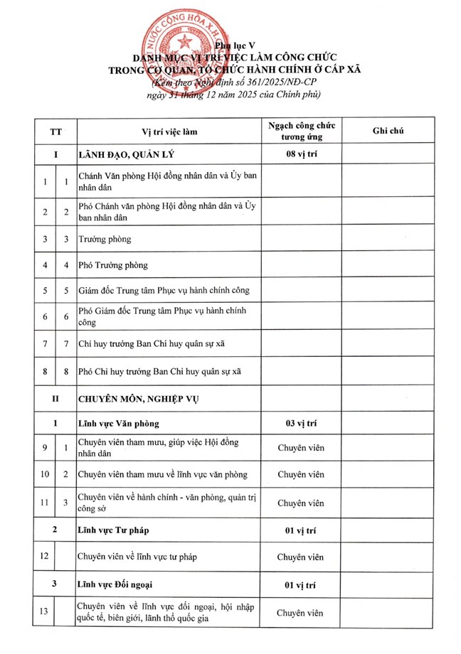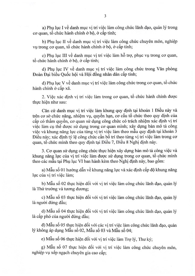 đ) Phụ lục V về danh mục vị trí việc làm công chức trong cơ quan, tổ chức hành chính ở cấp xã.