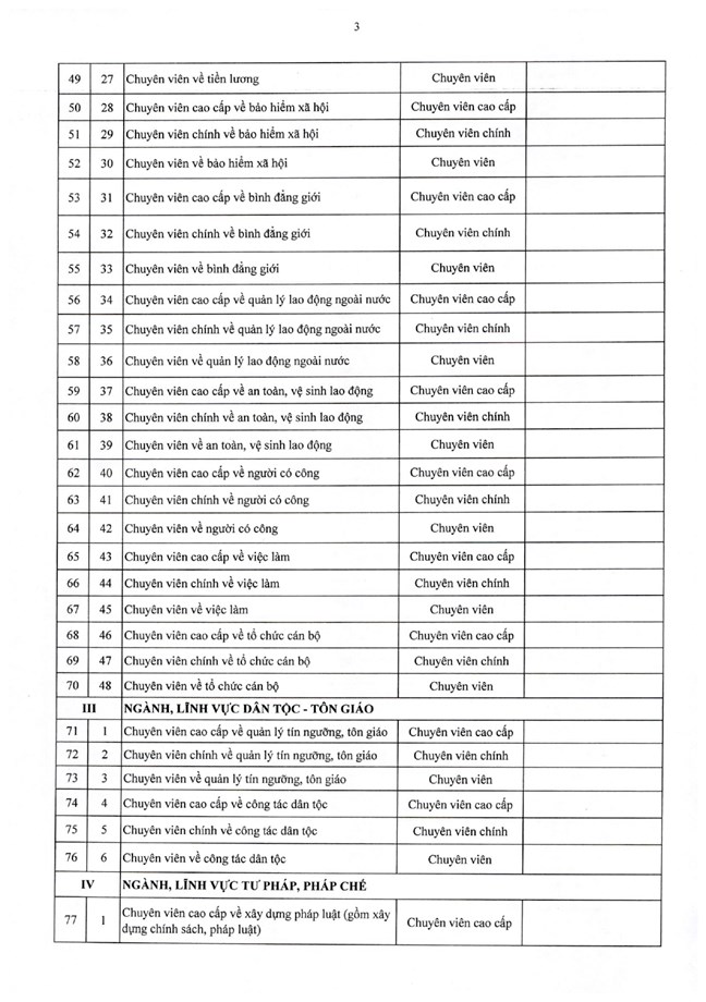 c) Phụ lục III về danh mục vị trí việc làm hỗ trợ, phục vụ trong cơ quan, tổ chức hành chính ở bộ, ở cấp tỉnh;