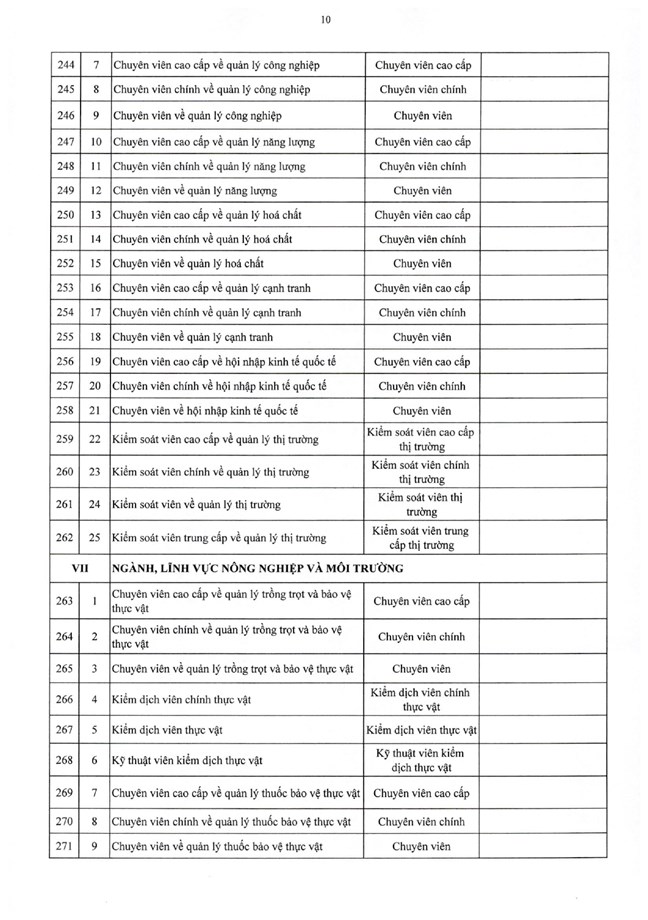 k) Mẫu số 10 thực hiện đối với vị trí việc làm công chức chuyên môn, nghiệp vụ xếp ngạch chuyên viên và tương đương ở bộ, ở cấp tỉnh;