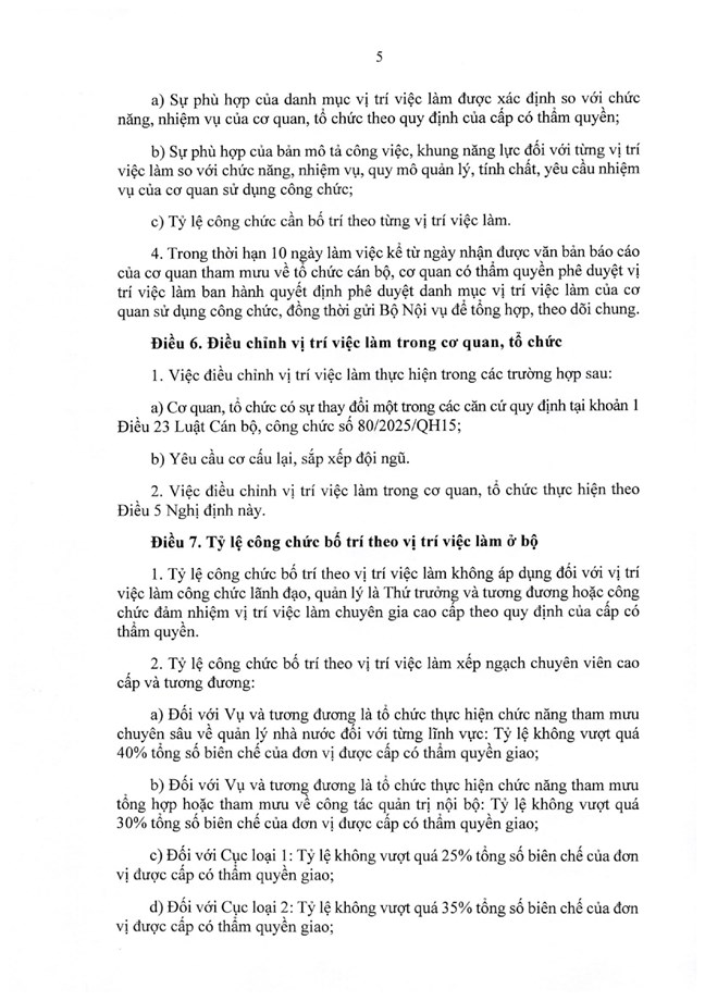 Chậm nhất đến ngày 01/7/2026, các bộ, ngành, địa phương ban hành quyết định phê duyệt vị trí việc làm